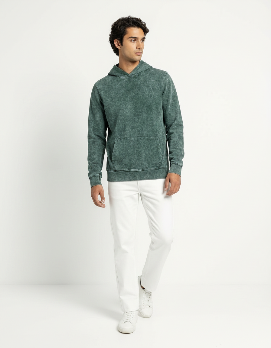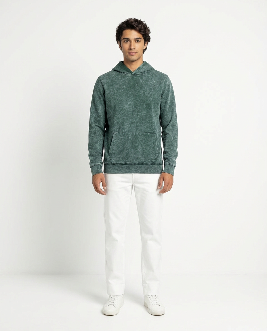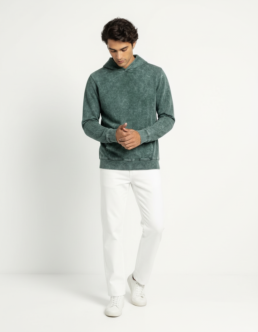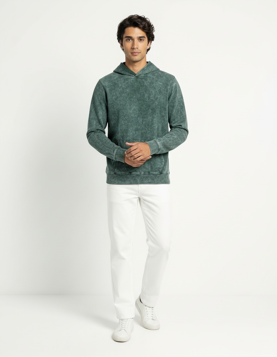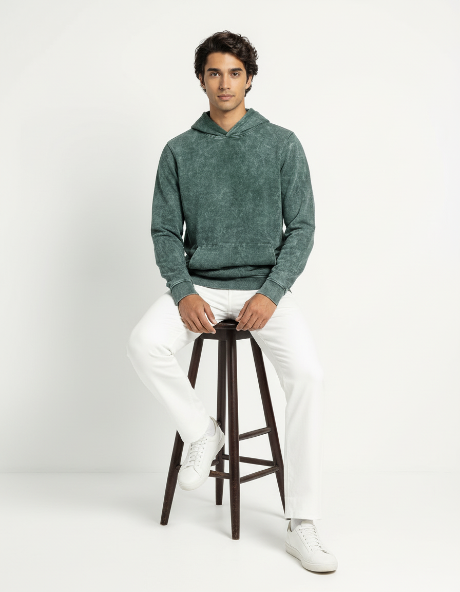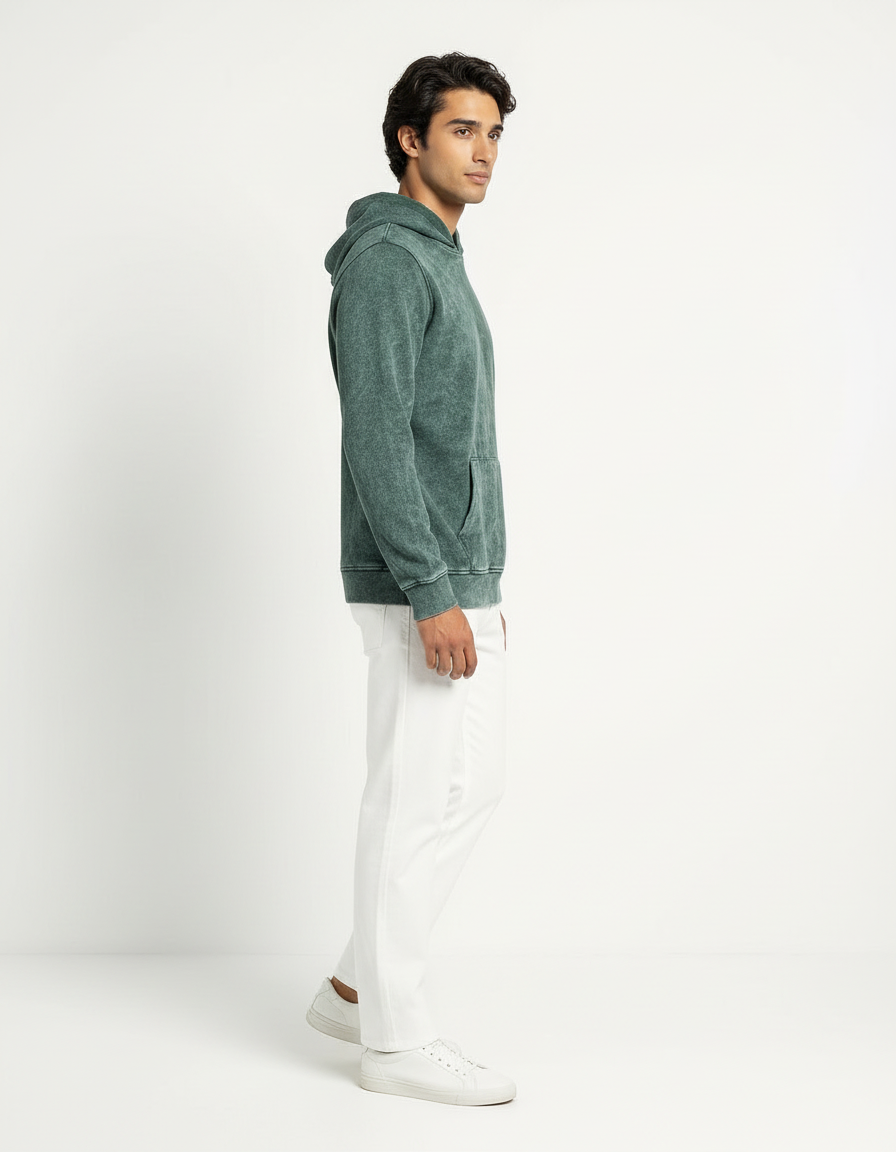 Rediscover comfort in style with the Evergreen Vintage Acid Wash Hoodie. This deep forest-green hoodie delivers a perfectly faded, lived-in look that feels like an old favorite from day one. Crafted from premium French terry fabric, it combines a soft interior with a textured, mineral-washed finish on the outside for a relaxed yet elevated vibe. Whether you’re lounging, layering, or heading out, this hoodie keeps you effortlessly cool and comfortable.