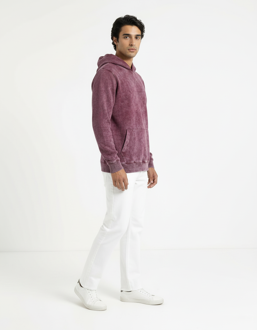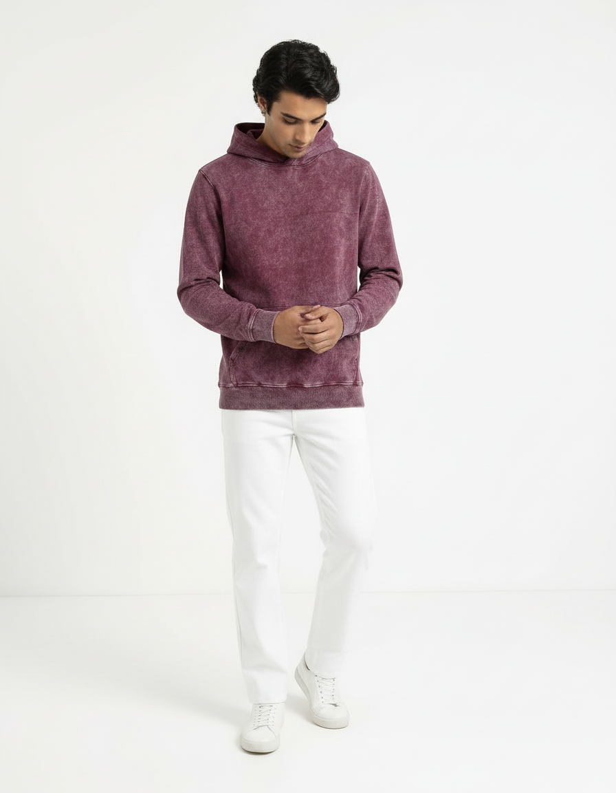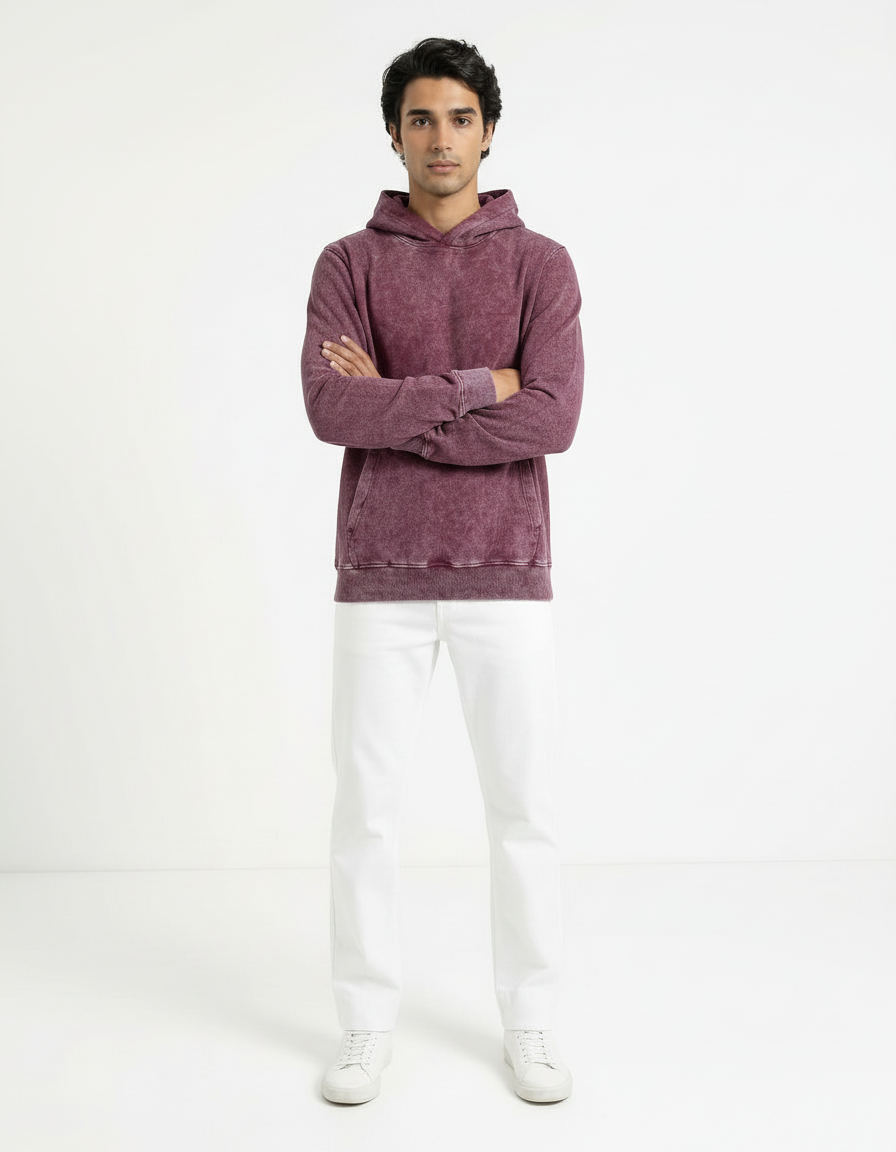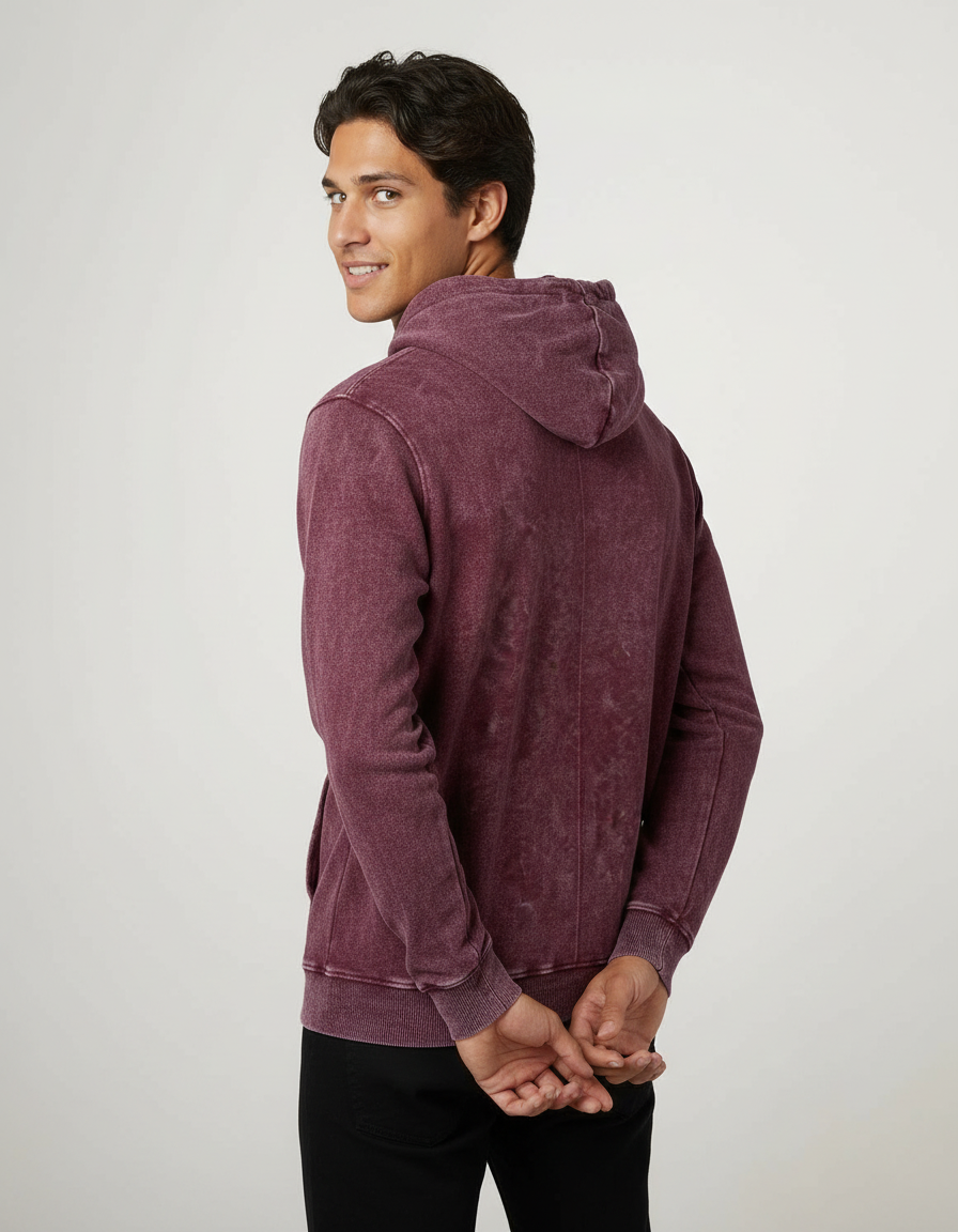 Elevate your casual style with the Vintage Acid Wash Hoodie in rich maroon. Designed with a worn-in, washed finish for that effortlessly cool vintage look, this hoodie blends timeless comfort with modern streetwear appeal. The soft French terry fabric provides a cozy, breathable feel, while the kangaroo pocket and ribbed trims ensure everyday functionality. Perfect for layering or lounging, this piece is your go-to for all seasons.